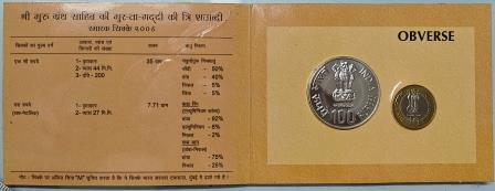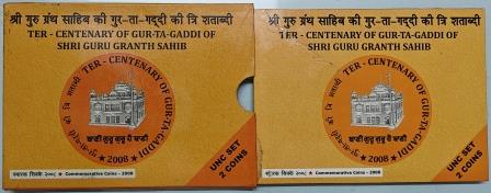 2008 Ter Centenary of Gur-Ta-Guddi of Shri Guru Granth Sahib Rs.100 & Rs.10 UNC Set Mumbai