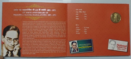 2018 125th Birth Anniversary Prasanta Chandra Mahalanobis – Rs.5 UNC Hyderabad