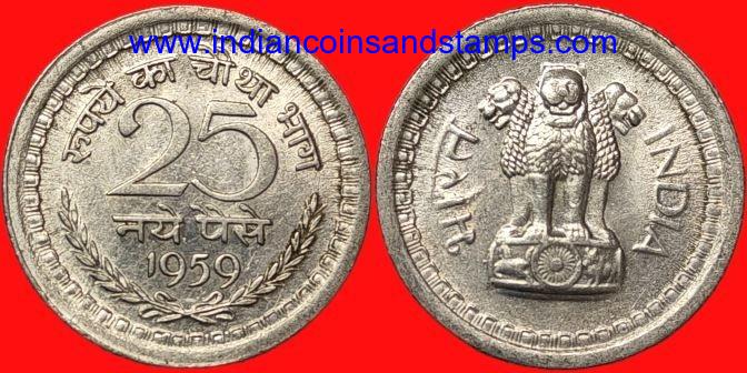 25 Naya Paise 1959 Kolkata Nickel