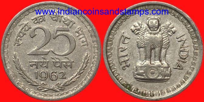25 Naya Paise 1962 Kolkata Nickel