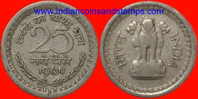 25 Naya Paise 1960 Kolkata Nickel