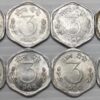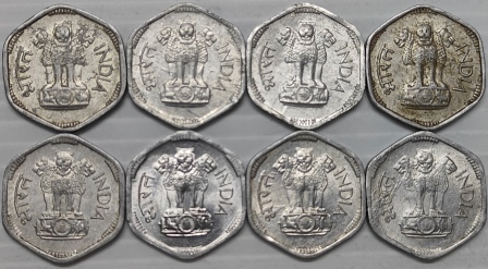 <3 Paise 1964 to 1971 Year wise Complete Set of 8 Coins Aluminium