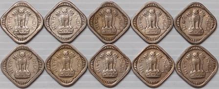 5 Naya Paise 1957 to 1963 & 5 Paise 1964 to 1966 Mumbai Complete Set of 10 Coins Copper Nickel