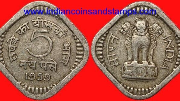 5 Naya Paise 1959 Mumbai Copper Nickel
