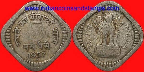 5 Naya Paise 1957 Mumbai Copper Nickel