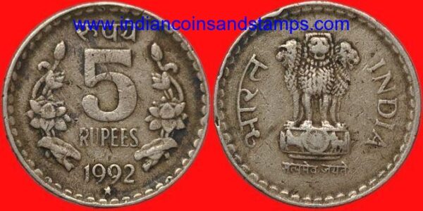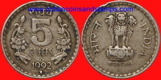 5 Rupees 1992 Hyderabad