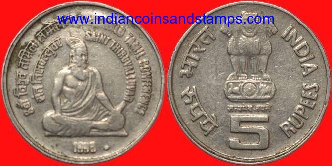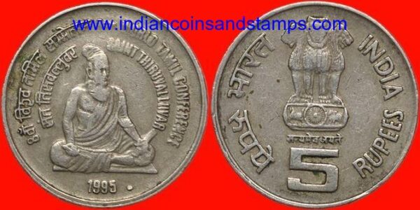 5 Rupees 1995 8th World Tamil Conference Saint Thiruvalluvar Noida