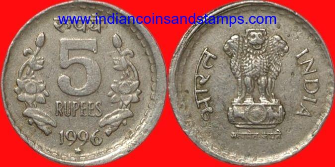 5 Rupees 1996 Hyderabad Shift Error Copper Nickel