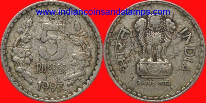5 Rupees 1997 Mumbai Drought Error Copper Nickel