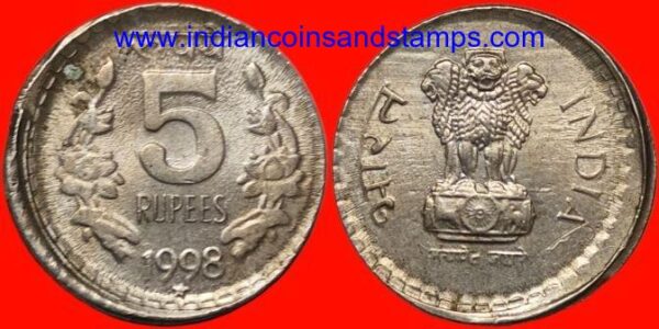 5 Rupees 1998 Hyderabad Shift Error Copper Nickel