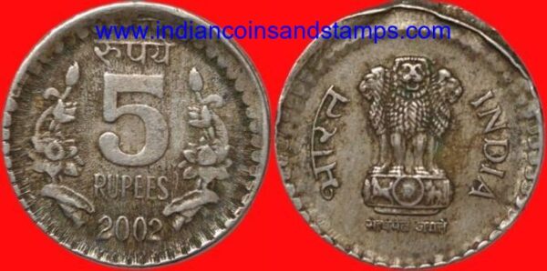 5 Rupees 2002 Kolkata Shift Error Copper Nickel