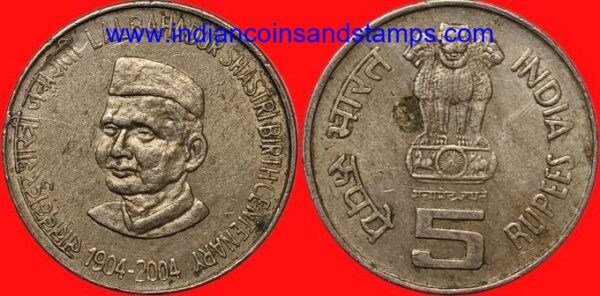 5 Rupees 2004 Lalbahadur Shastri Birth Centenary Cu Ni Kolkata