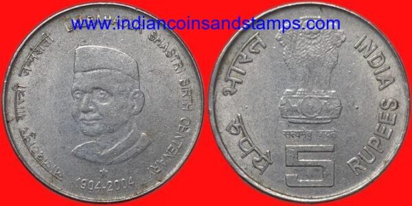 5 Rupees 2004 Lalbahadur Shastri Birth Centenary Steel Hyderabad