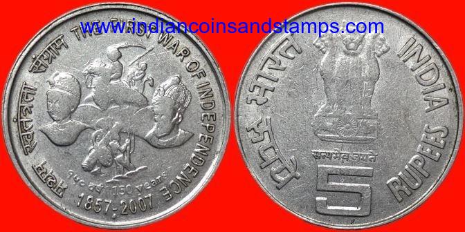 5 Rupees 2007 First War of Indian Independence Mule Mumbai Steel