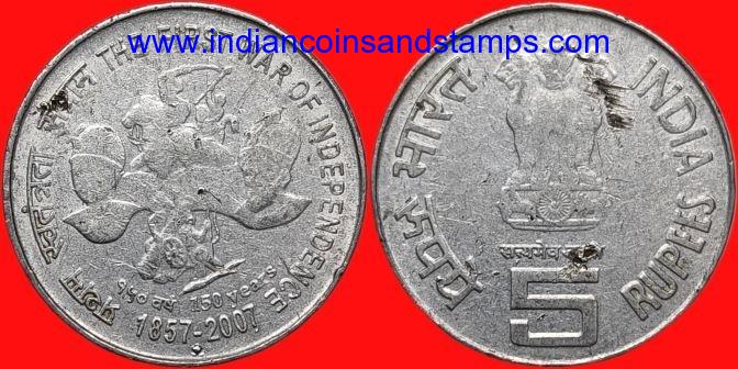 5 Rupees 2007 The First War of Indian Independence Steel Mumbai