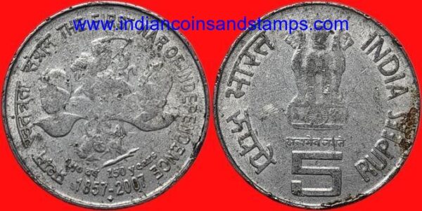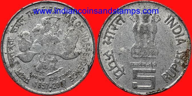 5 Rupees 2007 The First War of Indian Independence Steel Mumbai