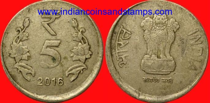 5 Rupees 2016 Kolkata Shift Error Nickel Brass