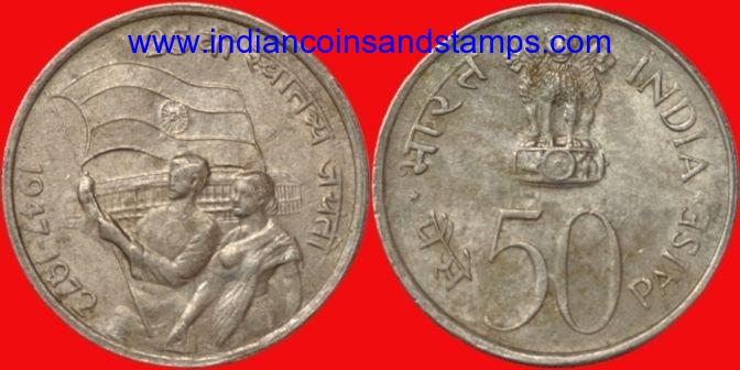 50 Paise 1972 25th Year Of Indian Independence Mumbai