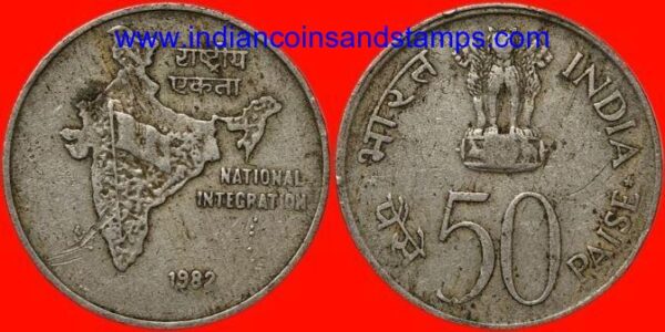 50 Paise 1982 National Integration Kolkata Lamination Error Copper Nickel