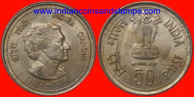 50 Paise 1985 Indira Gandhi Kolkata Extra Metal Error Copper Nickel