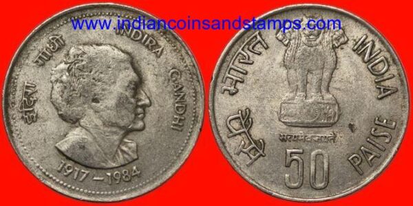 50 Paise 1985 Indira Gandhi Kolkata Mule