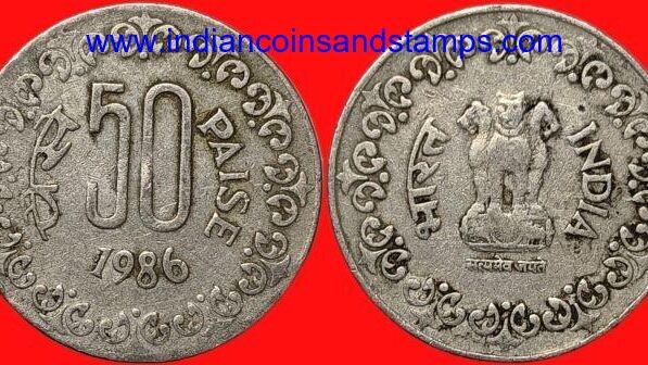 50 Paise 1986 Mumbai Copper Nickel