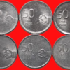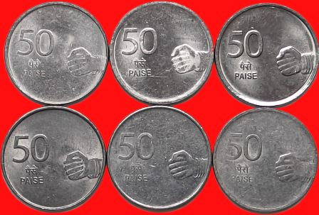 50 Paise 2008 to 2010 Complete Mint wise Set of 6 Coins Steel