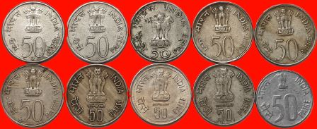 50 Paise Commemorative Complete Set of 10 Coins