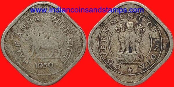 Be the first to review “Half Anna 1950 Kolkata Copper Nickel”