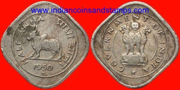 Half Anna 1950 Mumbai Die Variety Copper Nickel