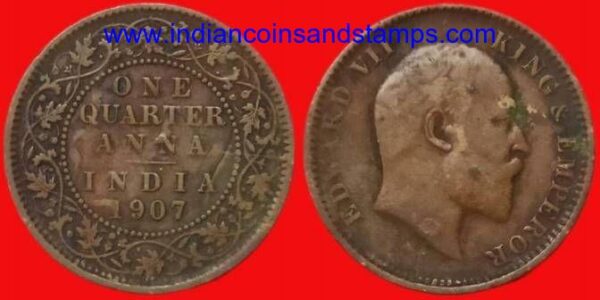 One Quarter Anna 1907 Kolkata Bronze Slight Ghost Error