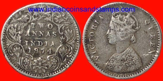 Two Annas 1874 Kolkata Silver (Not perfect shape)