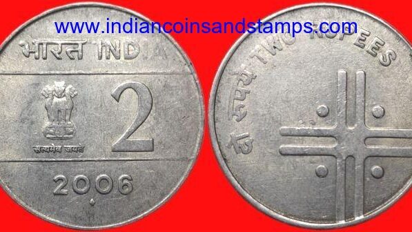 2 Rupees 2006 Mumbai (Variety in digit 6) Steel
