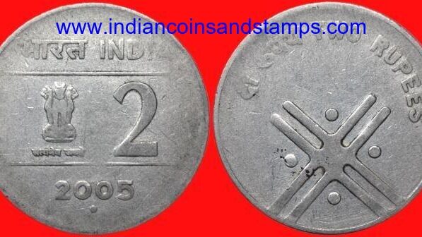2 Rupees 2007 Hyderabad Mint Mark Position Variety Set of 2 Coins Steel