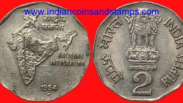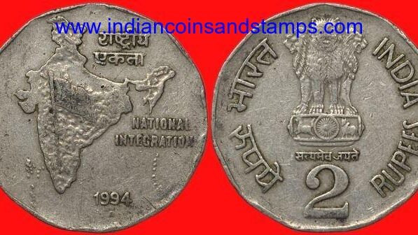 2 Rupees 1994 Mumbai Drought Error Copper Nickel