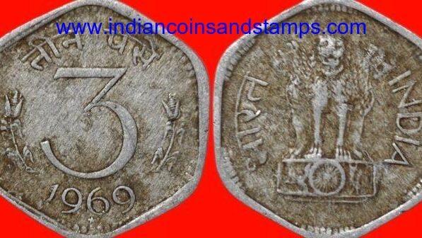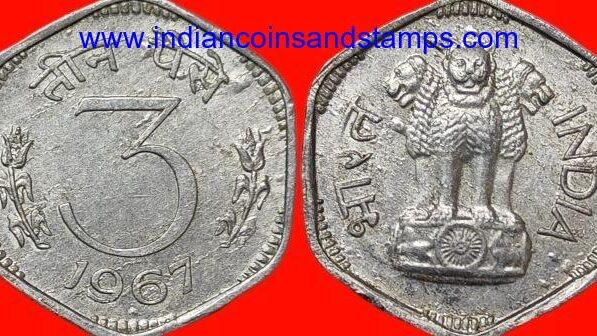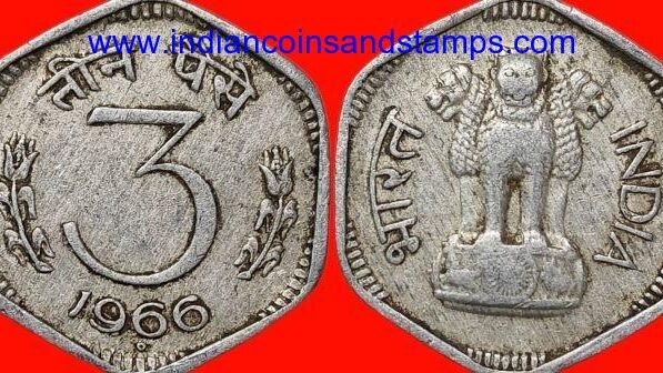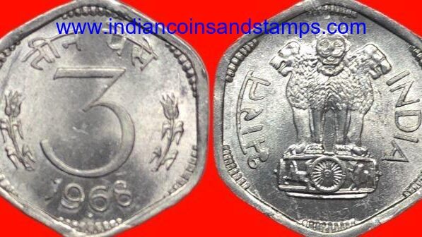 3 Paise 1966 Hyderabad Dot in Diamond Aluminium