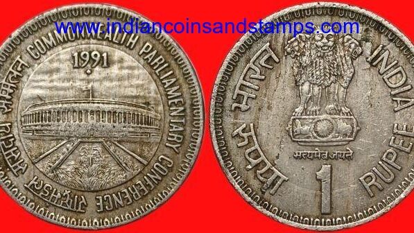 1 Rupee 1991 Commonwealth Parliamentary Conference Mumbai Copper Nickel