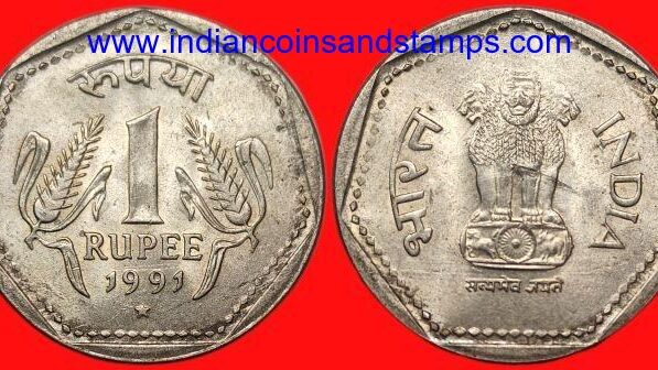 1 Rupee 1991 Hyderabad Die Doubling Error Copper Nickel