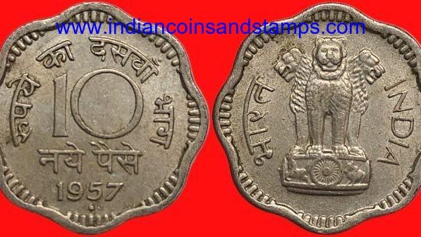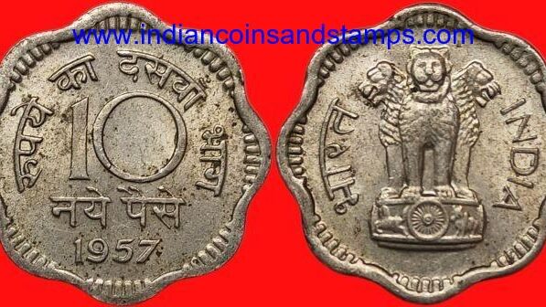 10 Naya Paise 1957 Mumbai Copper Nickel