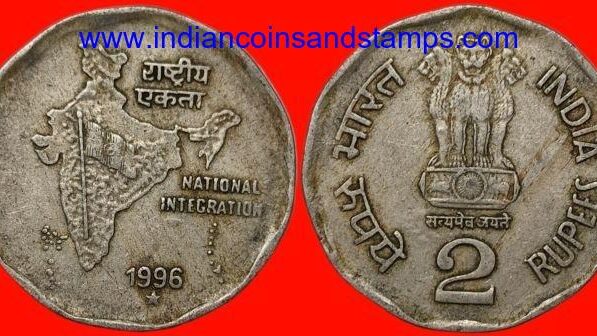 2 Rupees 1995 Mumbai Drought Error Copper Nickel